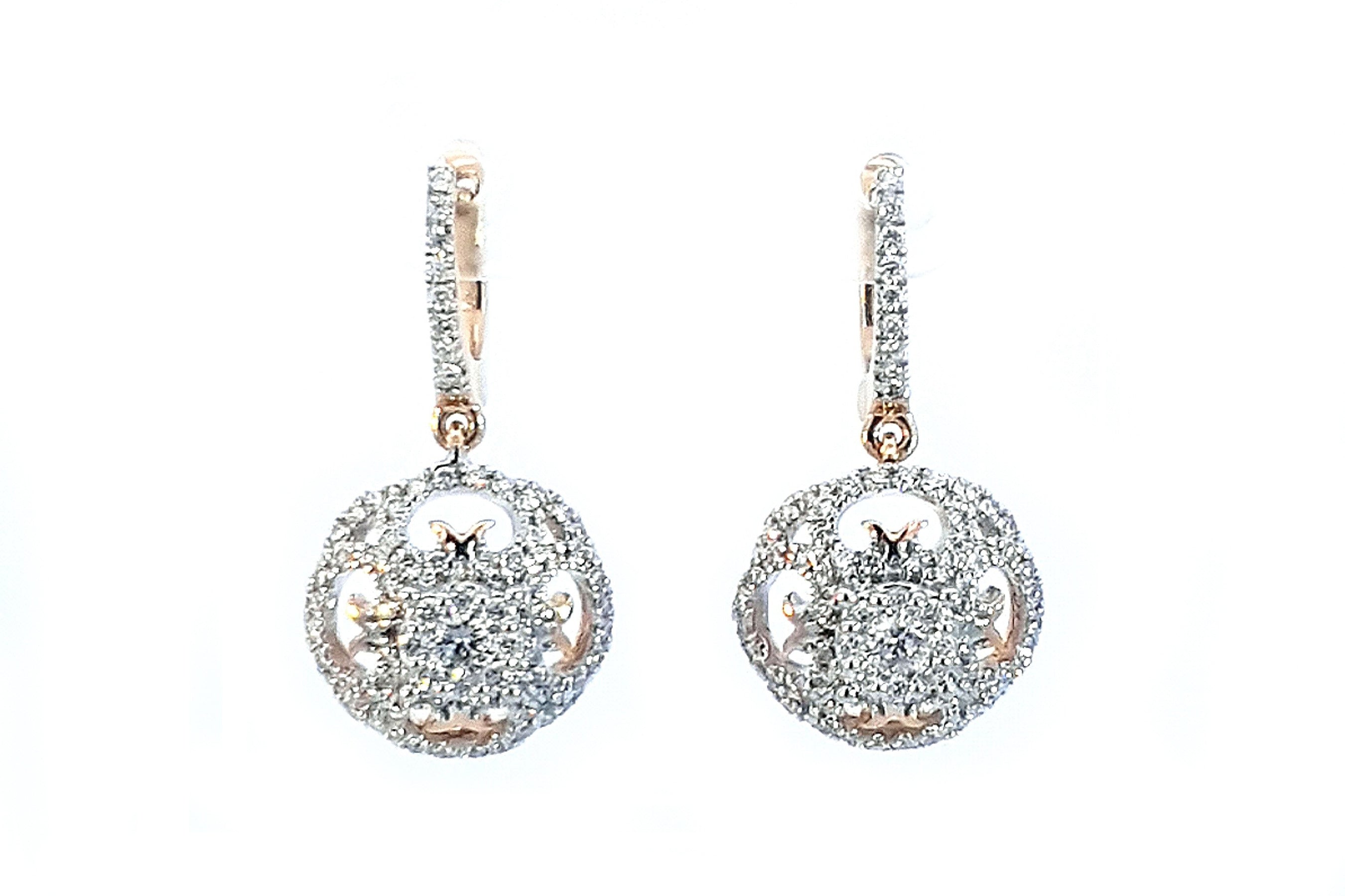 These earrings are set with a total of 154 diamond stones weighing 0.74ct.