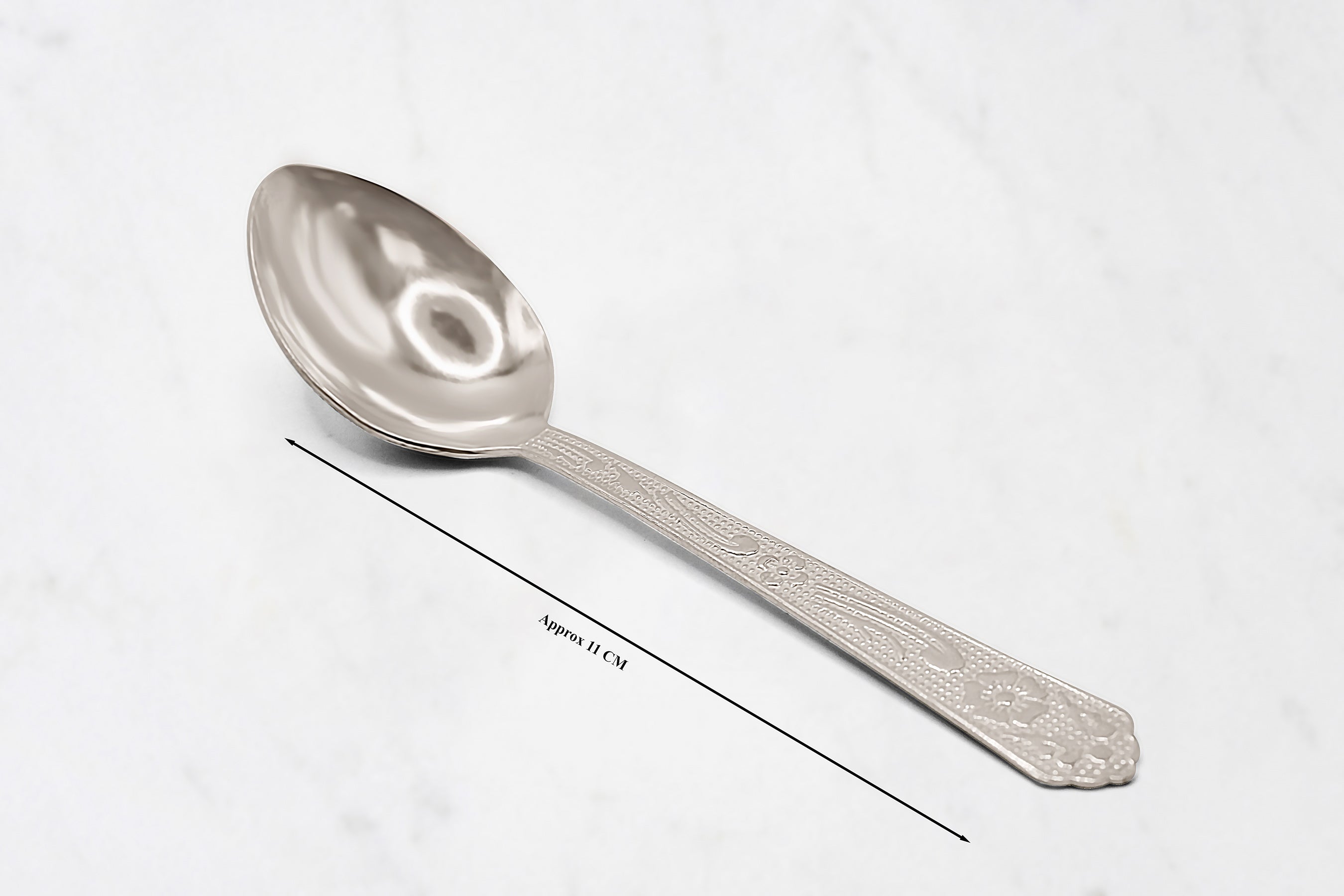 Silver spoon weighs approximately 13 grams and is approximately 11 centimeters long.