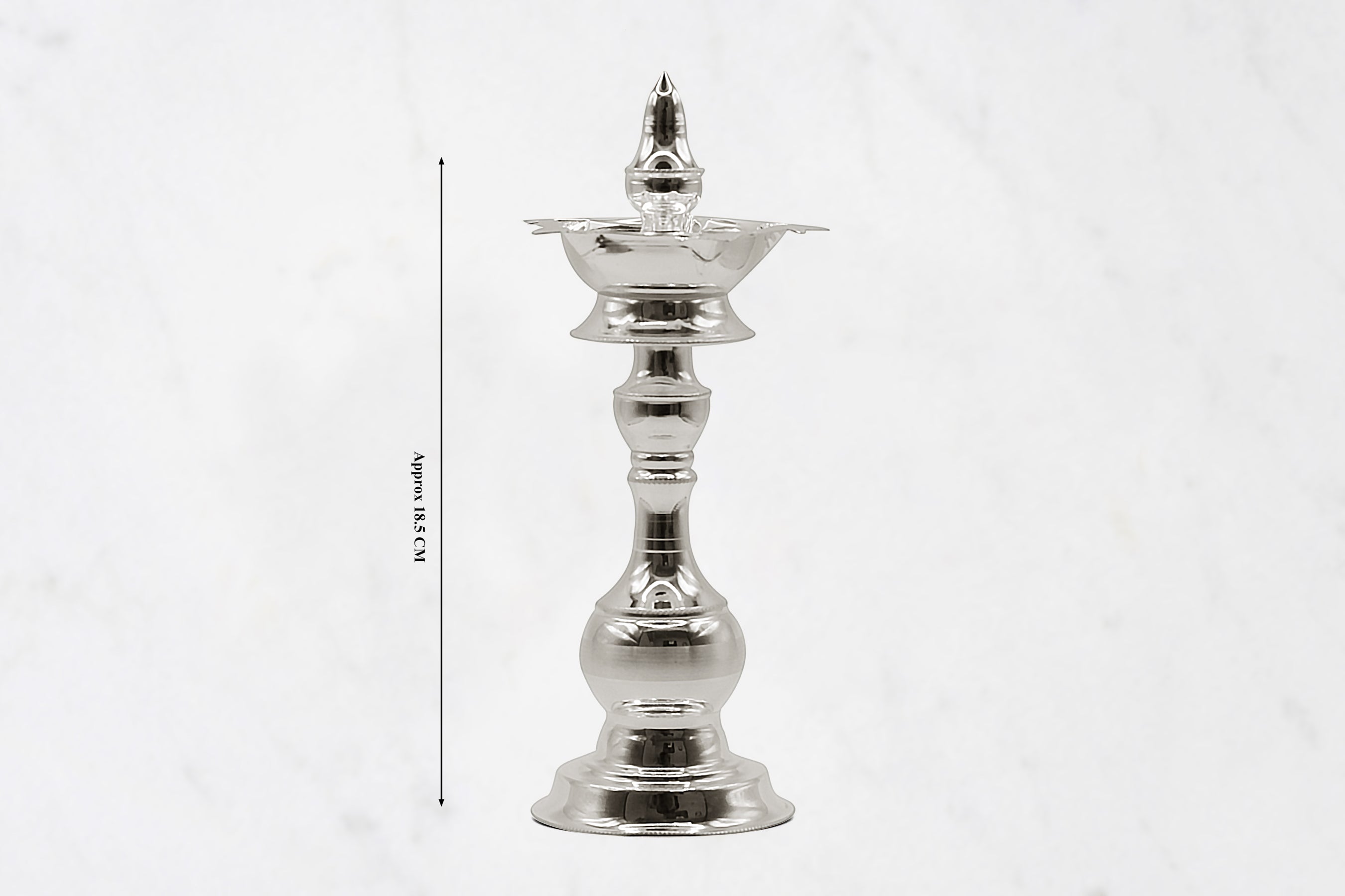 A long and tall sized diya made of pure silver, hallmarked 925.