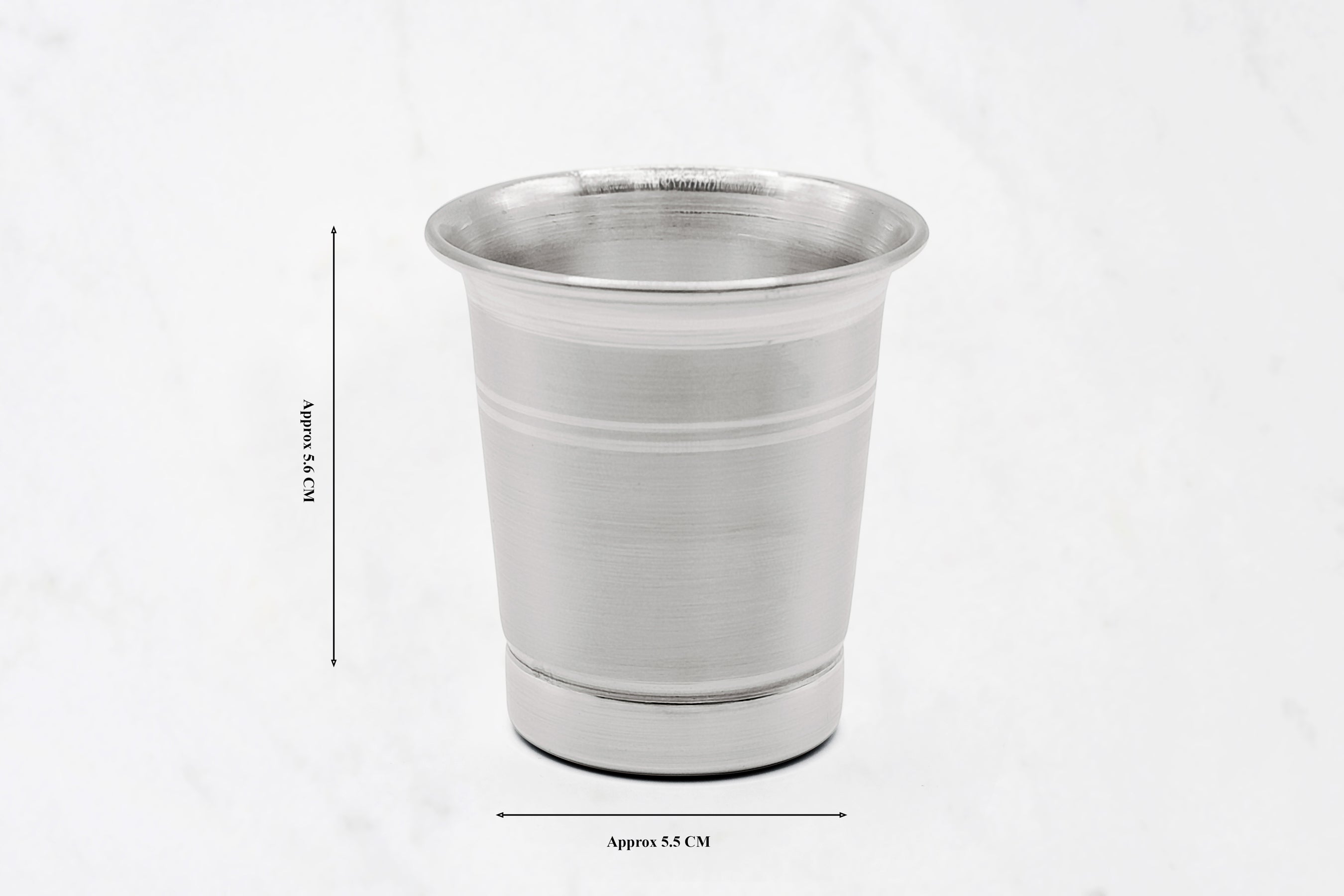 A medium sized glass with a curved design. Made of pure silver, hallmarked 925.
