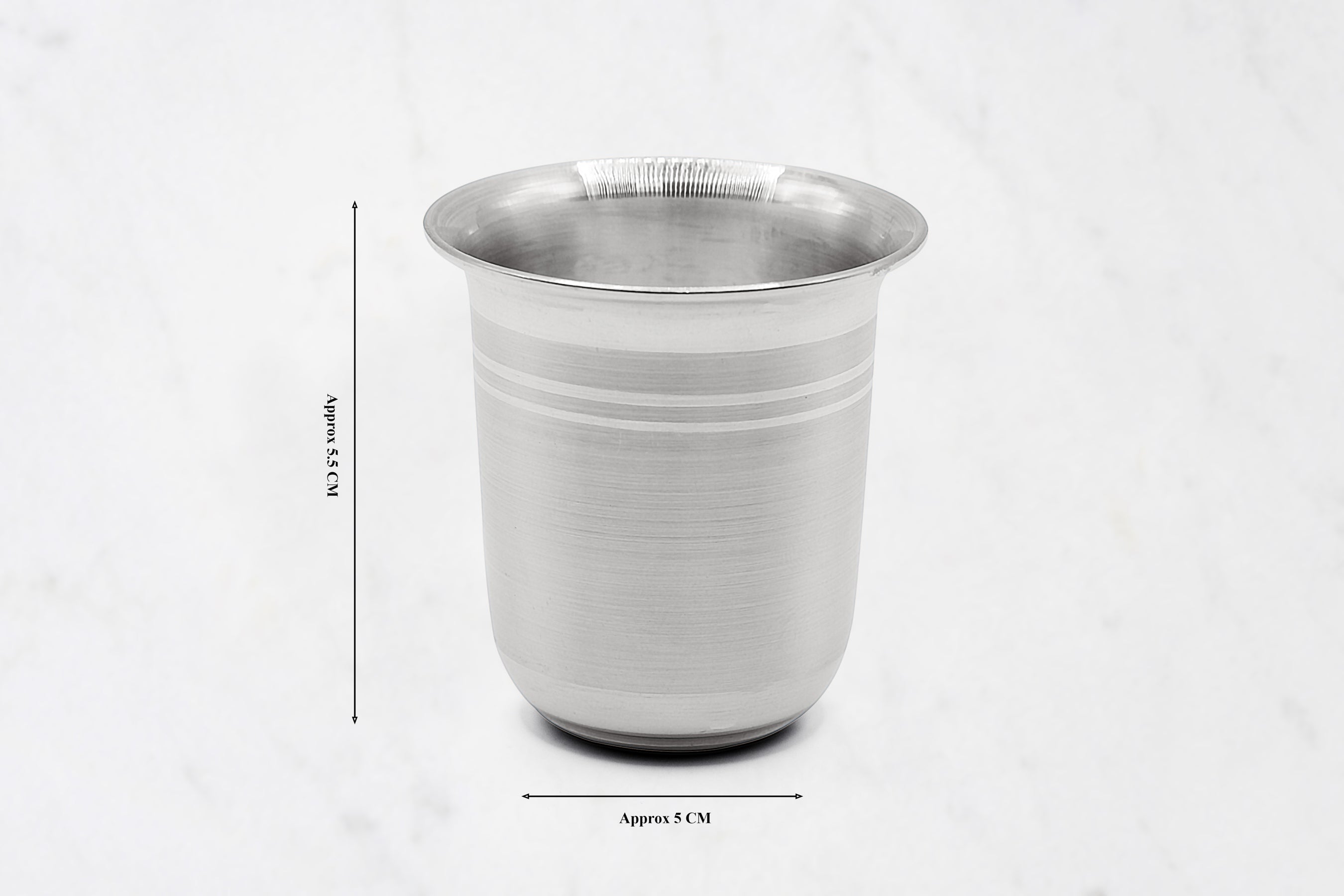 A medium sized glass with a rounded bottom made of pure silver, hallmarked 925.