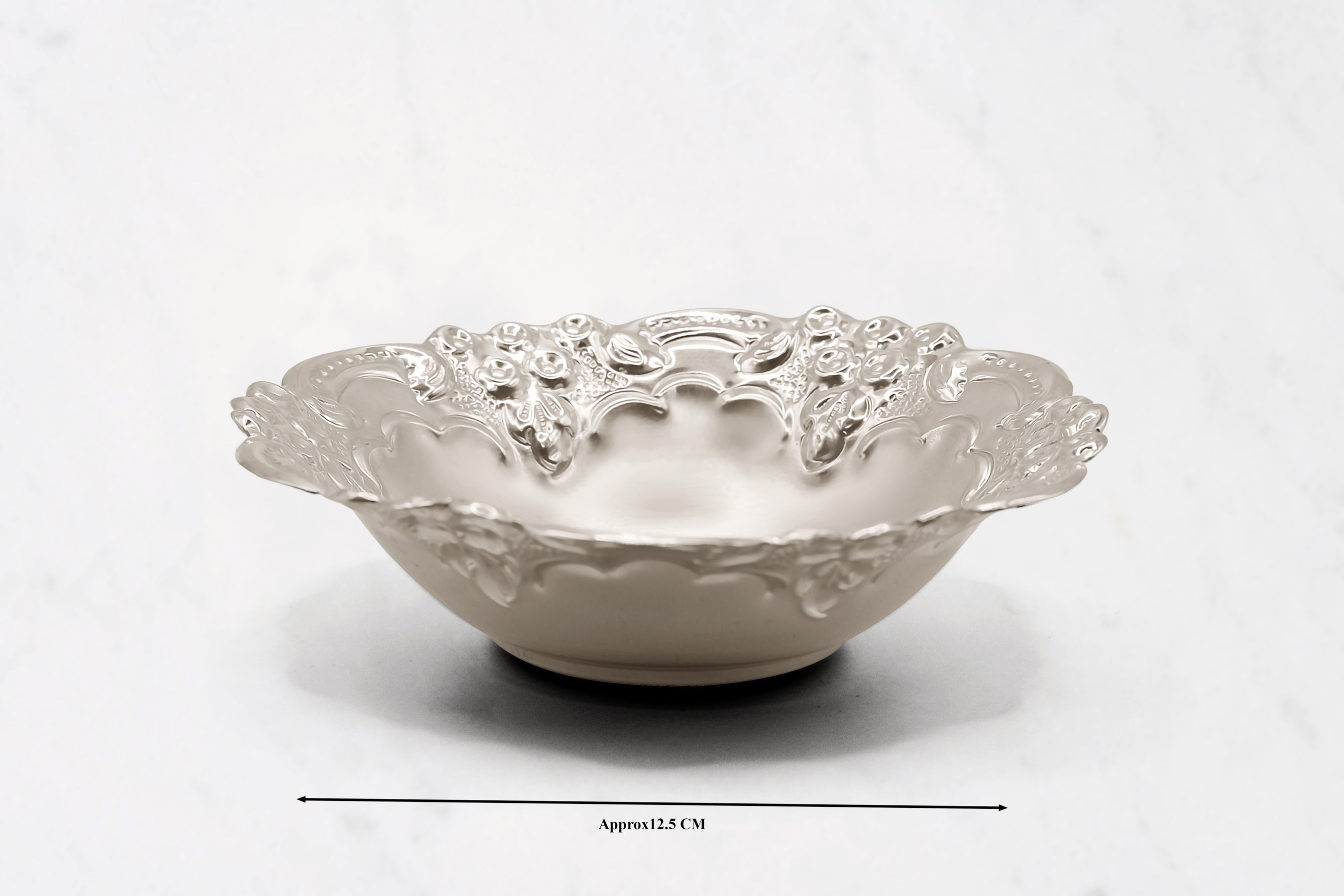 A detailed medium bowl made of pure silver, hallmarked 925.